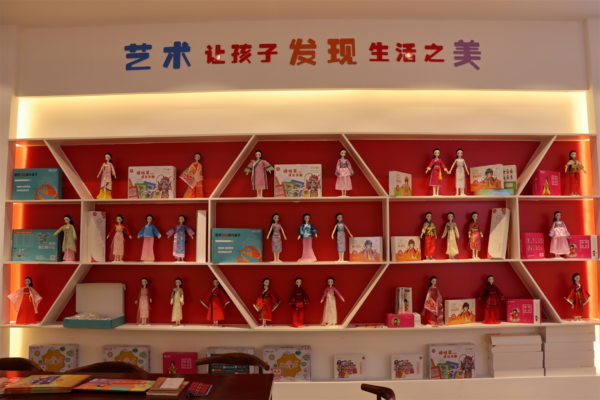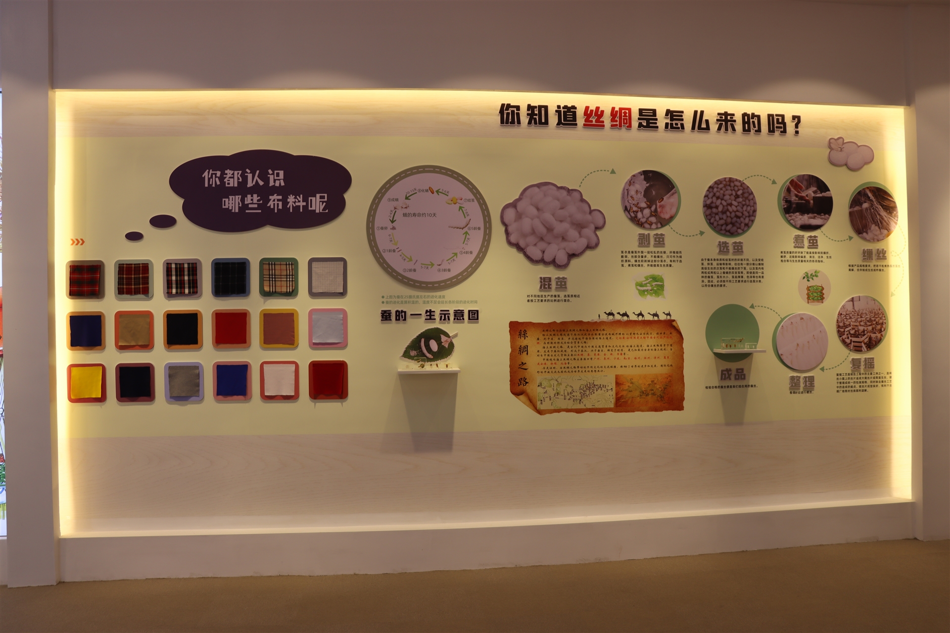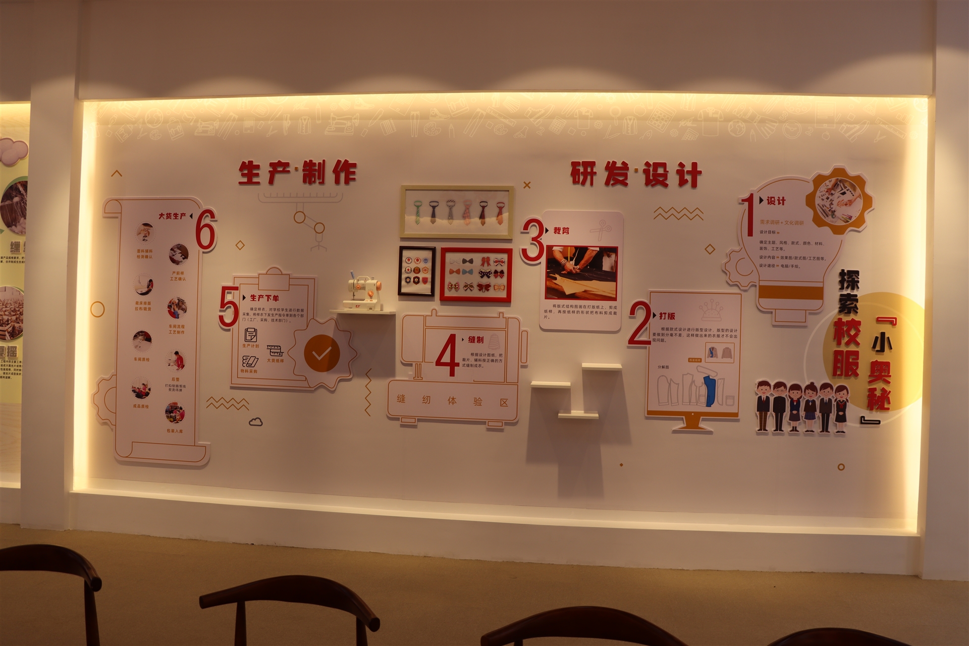 科普館是以校服與學校教育相結合的科普宣傳基地,在這里可以認識服裝面料的來源、種類,學習不同時代、不同款式傳統(tǒng)經(jīng)典服飾的特點,更能深刻了解一件校服的制作過程,該展區(qū)同時設置了DIY縫紉體驗區(qū),可以體驗裁剪的樂趣。