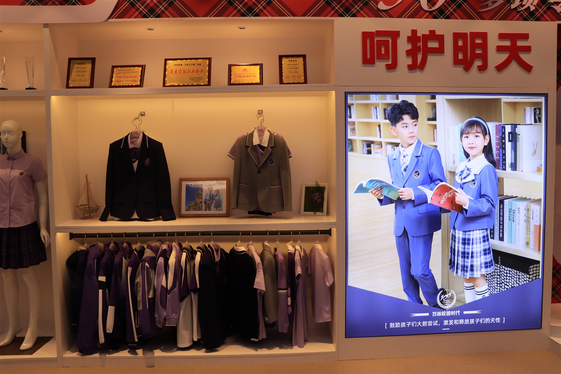 校服文化館是由百裕集團出資籌建,傾心打造的一個以展示學生裝發(fā)展歷史、學生裝文化發(fā)展歷程、不同時期圖文實物、古老紡織設備以及相關工具書的藏館,總面積1600平方米,由博物館、現(xiàn)代館、華服課堂、科技館等多個主題展區(qū)組成,形象的詮釋出校服作為特定文化載體的真正含義。