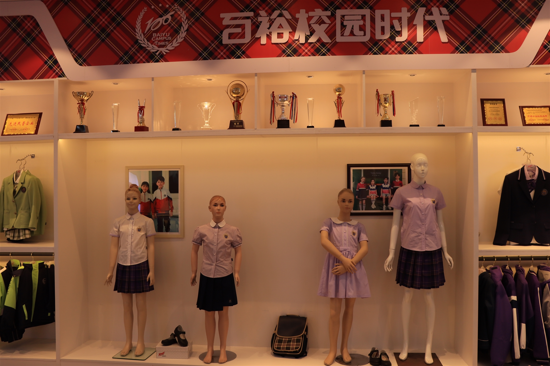 品牌館展示了百裕集團旗下百裕校園時代、喬派恩、愛樂學等品牌服飾經(jīng)典款,不同的區(qū)域裝飾風格展現(xiàn)不同的品牌個性與文化,可滿足靜態(tài)與動態(tài)不同形式的展示方式。