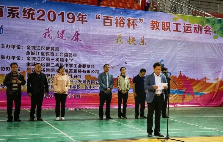 為促進(jìn)全民健身運(yùn)動(dòng)廣泛開展,活躍教育系統(tǒng)教職工文體生活,營造團(tuán)結(jié)、和諧、向上的教職工氛圍,展示教育系統(tǒng)干部職工良好精神風(fēng)貌,2019年11月22日,河池市金城江區(qū)教育系統(tǒng)"百裕杯"教職工運(yùn)動(dòng)會(huì)在河池市金城江體育館舉行,活動(dòng)為期三天