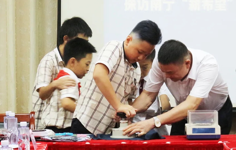 參觀的過程,小記者們對學生裝的生產(chǎn)有了一定的了解,但“小小服裝,大奧妙”,正版學生裝的奧妙在哪里?緊接著小記者與同行的家長們以及新希望工作人員、百裕工作人員齊聚會議室,通過“做實驗”、“答記者問”、“實物展示”等形式,對新希望學生裝的奧秘進一步深入探索。