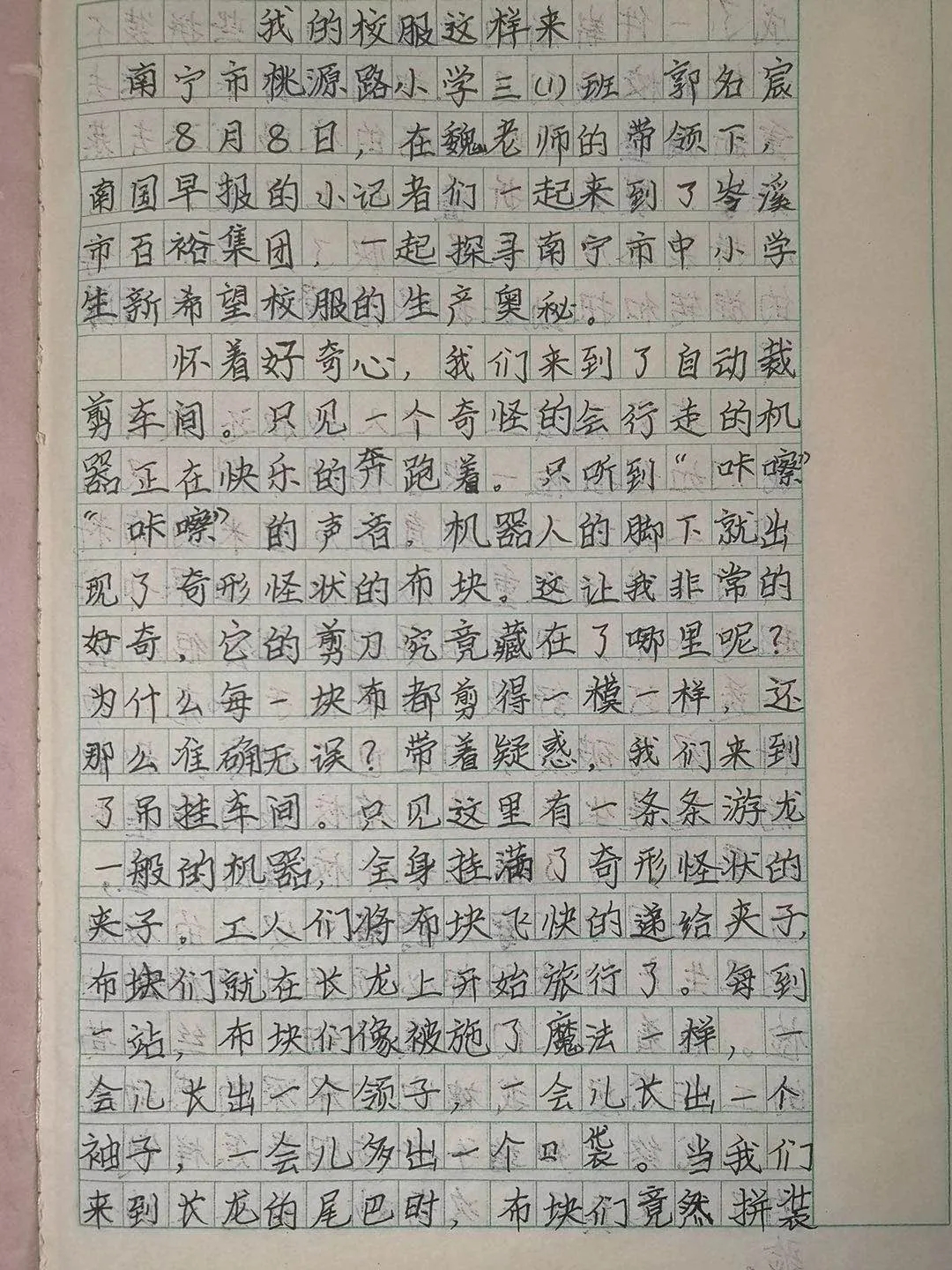 提起“新希望”學生裝,想必南寧市的中小學生們是再熟悉不過的了,這可是幾代南寧人童年與青春的回憶。但是關于“新希望”學生裝的生產(chǎn),估計就沒幾個人聽說過了!那么大家就跟隨小記者們一同去探究竟吧~