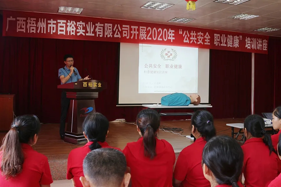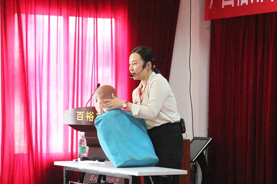講座上,百裕實業(yè)總經(jīng)理曾晏來表示:“公共安全職業(yè)健康專題講座,是“安全生產(chǎn)月”系列活動之一。目前,公司積極開展形式多樣、內(nèi)容豐富的 “安全生產(chǎn)月”系列活動,希望通過這次活動,進(jìn)一步增強(qiáng)員工們的自我保護(hù)、現(xiàn)場救護(hù)和自我保健能力 ,最大限度降低突發(fā)性傷害事件造成的危害,養(yǎng)成良好的健康生活習(xí)慣,提高員工職業(yè)健康意識,增強(qiáng)企業(yè)職業(yè)健康管理。本次培訓(xùn)是比較規(guī)范的一些救護(hù)方法,請同事們認(rèn)真聽,細(xì)心觀察老師的操作方法。”
