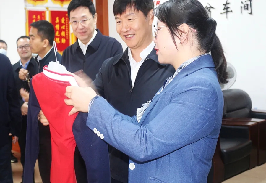 在參觀展示廳的過程中,市場(chǎng)總監(jiān)曾凱蘭向領(lǐng)導(dǎo)們?cè)敿?xì)介紹了百裕校園服飾特點(diǎn)。環(huán)江是毛南、壯、漢、苗、瑤、水、仫佬族、侗、布依等少數(shù)民族集中地,是全國(guó)惟一的毛南族自治縣,擁有絢爛多彩的少數(shù)民族文化背景,百裕集團(tuán)在服務(wù)當(dāng)?shù)貙W(xué)校學(xué)子的同時(shí),充分保留民族文化特色,將文化元素融入到學(xué)生服飾當(dāng)中,傳承民族文化。對(duì)于此舉,劉小明給予了認(rèn)可與極大的鼓勵(lì)。
