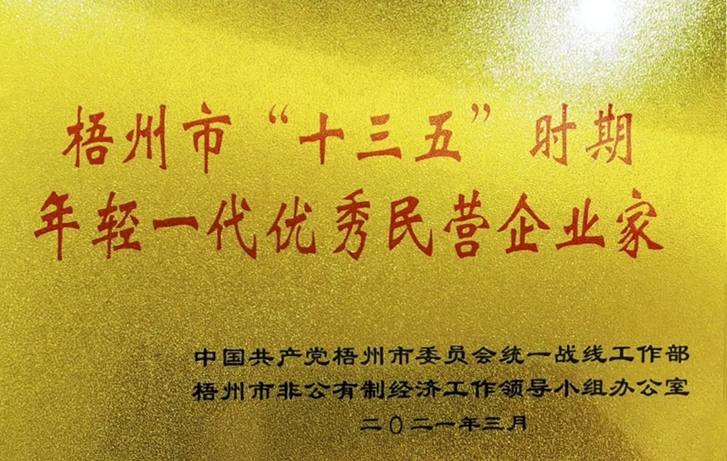 “梧州市‘十三五’時(shí)期年輕一代優(yōu)秀民營企業(yè)家”稱號是為貫徹落實(shí)中央、自治區(qū)黨委和梧州市委關(guān)于民營經(jīng)濟(jì)“兩個(gè)健康”發(fā)展的工作部署,營造尊重民營企業(yè)家價(jià)值、鼓勵年輕一代民營企業(yè)家創(chuàng)新創(chuàng)業(yè)的社會環(huán)境,進(jìn)一步增強(qiáng)年輕一代民營企業(yè)家的自豪感和發(fā)展信心,助力做好“六穩(wěn)”工作、落實(shí)“六?!比蝿?wù)而設(shè)立,,為“十四五”開好局、起好步作出積極貢獻(xiàn),以優(yōu)異成績慶祝中國共產(chǎn)黨成立100周年。