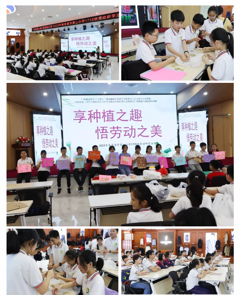 課堂開始,勞動(dòng)教育實(shí)踐基地的工作人員組織學(xué)生們,在多功能教室進(jìn)行了農(nóng)作物與勞作知識(shí)的學(xué)習(xí)。學(xué)習(xí)農(nóng)作物的辨認(rèn)、如何挑選出合適的農(nóng)作物種子,還學(xué)習(xí)了如何種植花生的步驟,課堂上同學(xué)們聽得聚精會(huì)神,積極參與互動(dòng)。在課堂最后,同學(xué)們用剝出來(lái)的花生殼做成了自己喜歡的拼圖,在積極響應(yīng)環(huán)保理念之余,又體驗(yàn)到了動(dòng)手的樂趣。