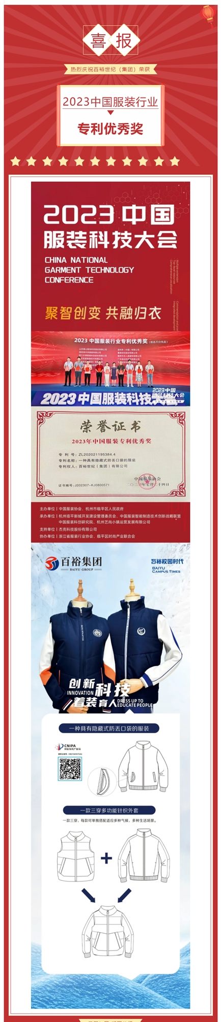 喜報(bào) I 百裕世紀(jì)(集團(tuán))榮獲 2023中國(guó)服裝行業(yè)專利優(yōu)秀獎(jiǎng)