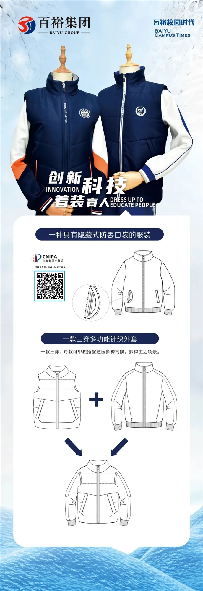 時(shí)代發(fā)展帶來的價(jià)值觀和審美觀的改變,是百裕集團(tuán)發(fā)展品牌的動(dòng)力,未來,百裕的隊(duì)伍堅(jiān)持將中華民族文化、國際時(shí)尚與校園文化相互結(jié)合。