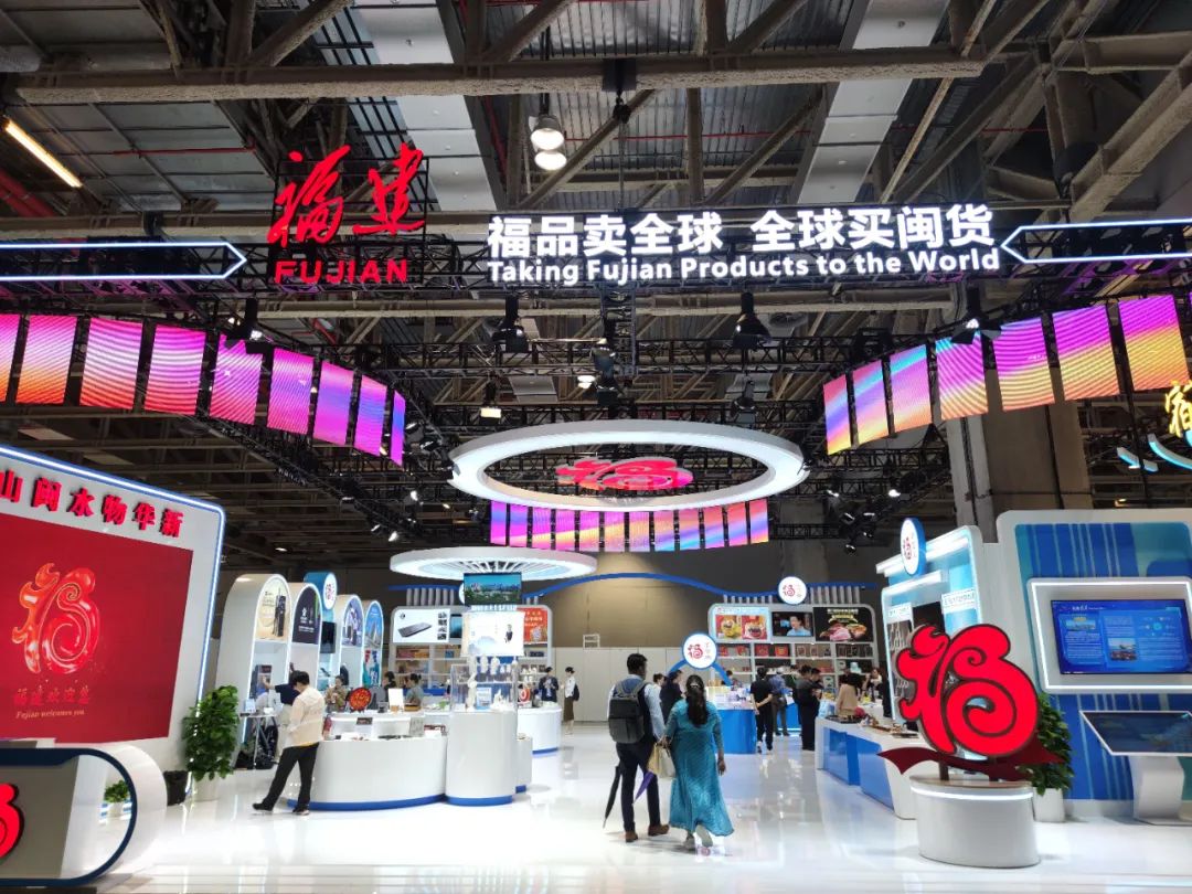 福建館以“福品賣全球、全球買閩貨”為主題,突出“福文化”,設(shè)置了“1+5”展區(qū),分別為福建形象展示區(qū)和福味飄香、福享食尚、福茶生活、福見商旅、福潮國風(fēng)等“五?!闭箙^(qū),福建福品類別中的消費(fèi)品品牌企業(yè)帶來了福品知名品牌、地標(biāo)性產(chǎn)品、老字號品牌和福品“新秀”等百余款福品好物。此外,福建館在展陳方式上進(jìn)一步創(chuàng)新,通過智能算法、手勢感應(yīng)等前沿技術(shù)以及老字號美食現(xiàn)場制作、品鑒等,讓福建館更具科技性、互動性、參與性。
