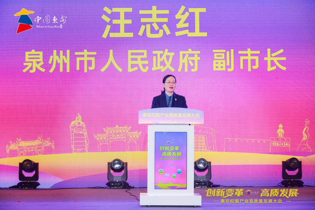 汪志紅代表泉州市委、市政府向出席活動的各位來賓和朋友們表示熱烈的歡迎,并向長期以來關心泉州紡織服裝產業(yè)的上級部門和致力于惠安校服產業(yè)發(fā)展的各位企業(yè)家、專家學者表示衷心的感謝和崇高的敬意。