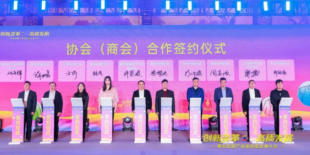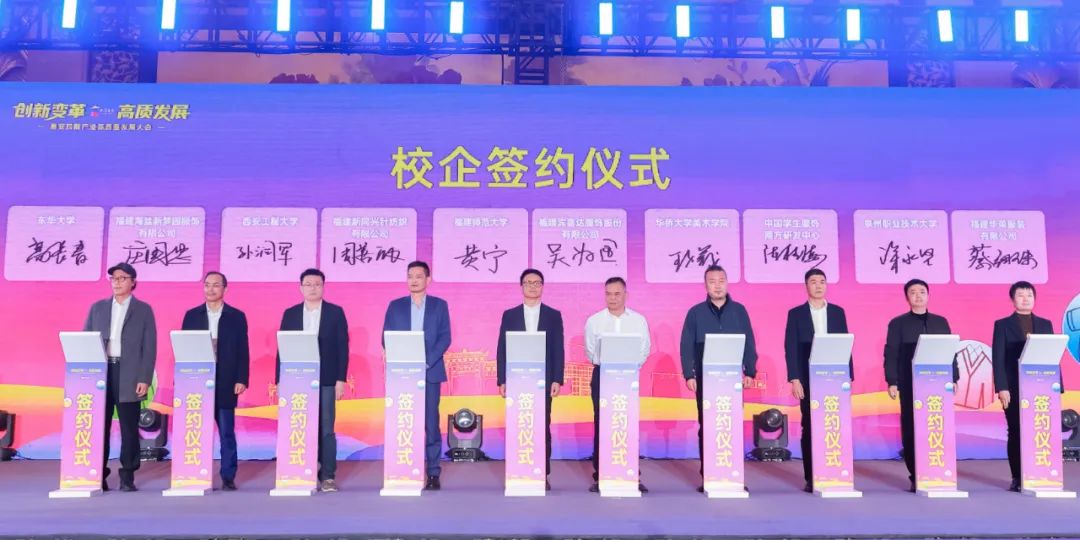 本次活動在中國教育裝備行業(yè)協(xié)會、中國教育后勤協(xié)會的指導下,由中共惠安縣委、惠安縣人民政府主辦。現場啟動校服產業(yè)高質量發(fā)展大會系列活動,表揚并授牌惠安縣校服行業(yè)經濟貢獻十佳企業(yè)(2022-2023年度),舉行校服行業(yè)企業(yè)家捐贈儀式和簽約儀式;縣工信商務局推介標準化園區(qū)并解讀校服產業(yè)惠企政策,縣校服協(xié)會發(fā)布校服高質量發(fā)展倡議書。此外,行業(yè)協(xié)會、院校專家、校服企業(yè)有關代表以“惠安校服產業(yè)高質量發(fā)展”為主題作交流發(fā)言;現場通過惠安校服產業(yè)發(fā)展宣傳片和校服品牌展示秀展現惠安校服產業(yè)發(fā)展現狀。
