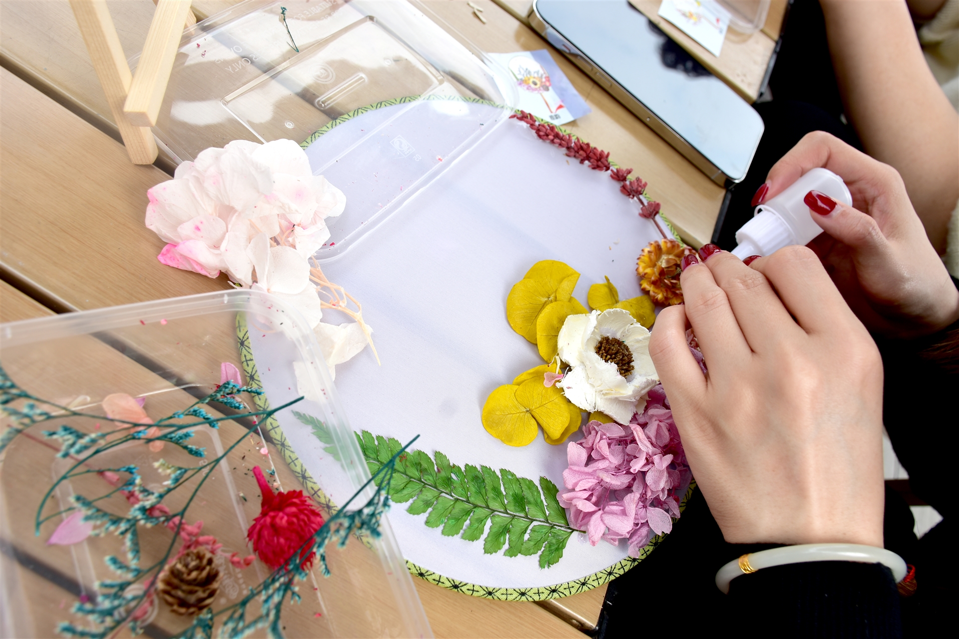 “做扇輕搖香杳杳,輕搖寶扇動(dòng)香風(fēng)”。整個(gè)活動(dòng)中,大家歡聲笑語不斷,每個(gè)人融合自己的創(chuàng)意、發(fā)揮想象力,用一花、一葉、一妙手在素白的扇面上,創(chuàng)作出兼具觀賞性和實(shí)用性的團(tuán)扇作品,傳承中華非遺之美。